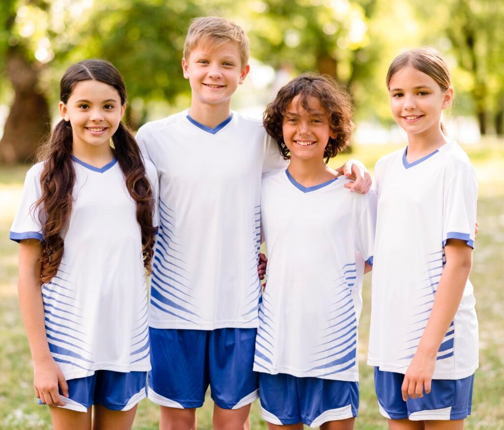 Flexible and comfortable sportswear tailored with breathable materials suitable for school and college sports activities.